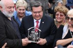 En présence de son concepteur, l’artiste George Chouliaras, le maire de Montréal, Denis Coderre, a accepté la statue grecque des mains du président de la Communauté hellénique du Grand Montréal, Nicholas Pagonis. «La communauté grecque fait partie de l’ADN de notre ville. Cette statue démontre qu’on peut être égaux et différents à la fois et qu’en tant que Montréalais, nous faisons partie d’une grande famille.»