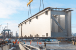 Les deux premières poutres-caissons en acier du nouveau pont Champlain sont arrivées. Ces pièces livrées mercredi permettront de débuter la construction de la superstructure.