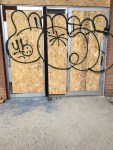 Une petite barrière a été placée pour remplacer un bout de la clôture avant arrachée. Les premiers étages de l’immeuble sont presqu’entièrement placardés.