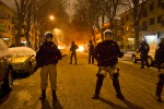 Peu après 21h30, une cinquantaine d’individus se sont rendus devant le poste de quartier 39, sur le boulevard Henri-Bourassa. Des pierres et des pétards ont été lancées avant que les forces de l’ordre ne s’interposent devant les locaux. Les émeutiers ont ensuite traversé la rue et, à l’aide notamment de poubelles sur roulette, ont brisé les vitrines de plusieurs commerces, notamment celles de la Banque de Montréal située à l’intersection de l’avenue Désy.
