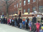 À Saint-Jean-de-Brébeuf, quelque 250 personnes se sont tenu la main devant les grilles de l’école pour demander au gouvernement libéral «d’investir davantage dans l’éducation».