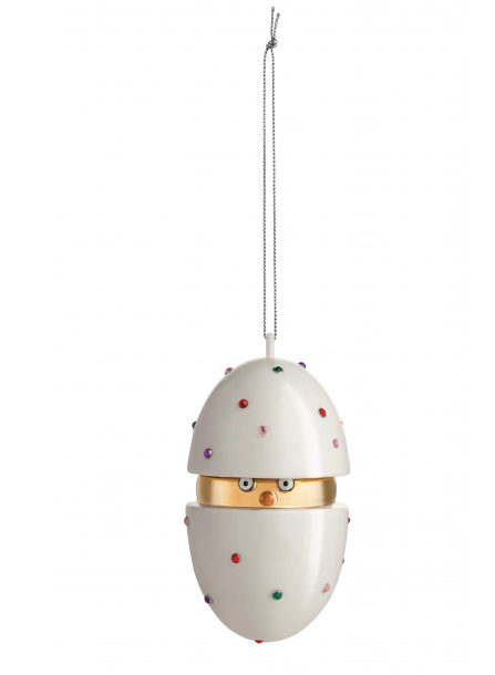 Rappelant les célèbres oeufs bijoux de Fabergé, cette petite décoration de Noël en porcelaine est aussi précieuse que la tradition qui l’a inspirée.