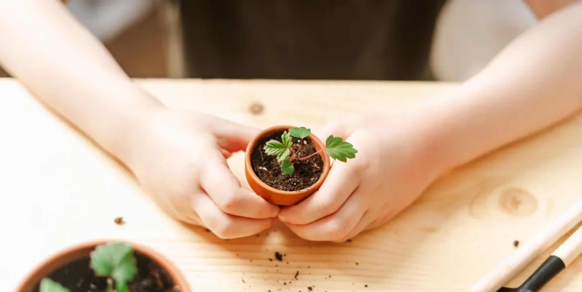 Un petit pot à décorer et des graines à y planter. Tu auras ton petit jardin à rapporter à la maison et à voir évoluer.