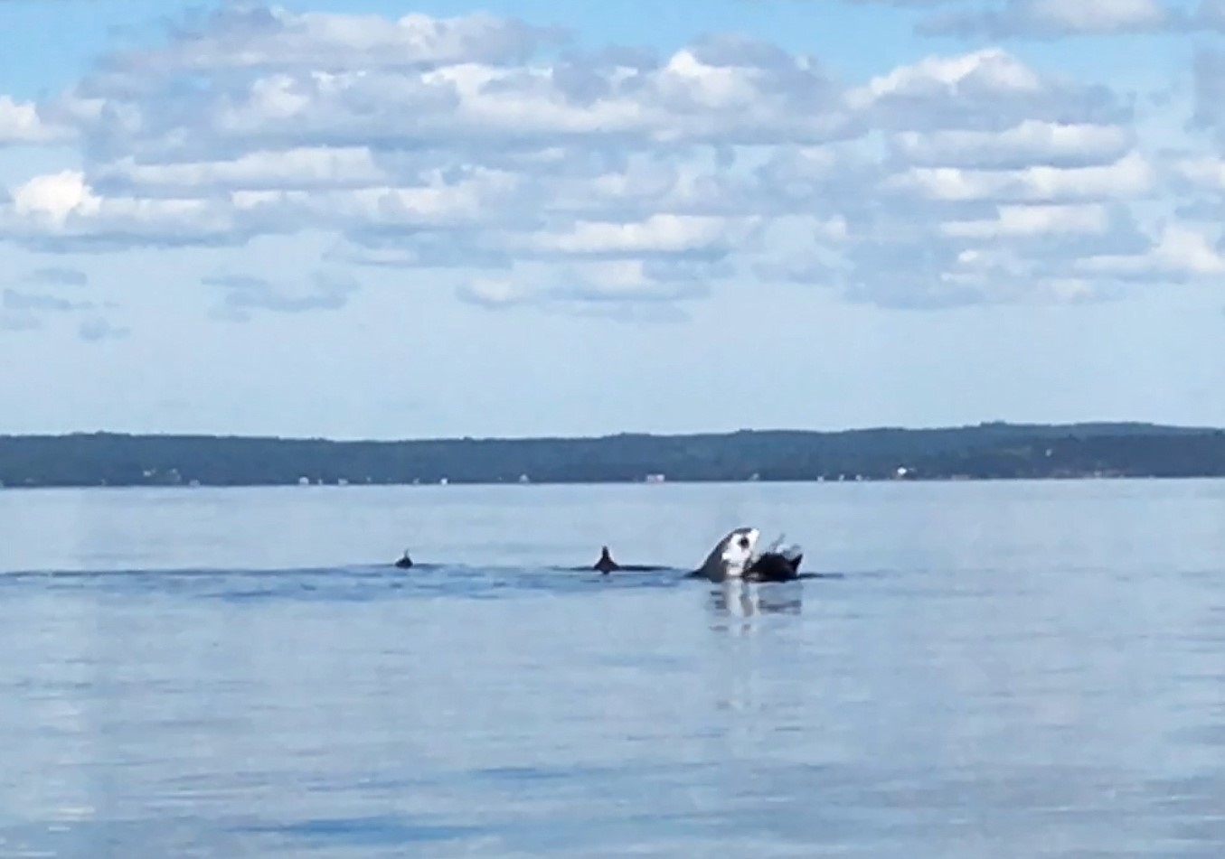 Un requin chassant des marsouins communs dans la baie de Sainte-Margaret, en Nouvelle-Écosse, a également été aperçu par un groupe de jeunes hommes de 22 ans qui a filmé la scène. Ce dernier était à bord d’un radeau gonflable puisqu’ils étaient venus pour observer des baleines.