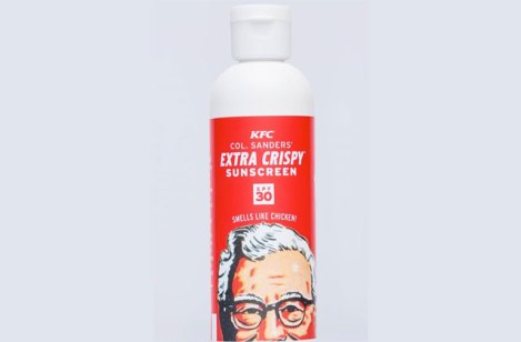 Après avoir lancé des vernis à ongles au poulet, voilà que la chaîne PFK (Poulet Frit Kentucky) poursuit sa lancée dans les produits de beauté en offrant de la crème solaire FPS 30 à fragrance de poulet frit.