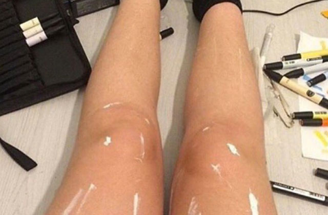 Que voyez-vous sur cette photo? Des jambes huilées ou des jambes avec de la peinture blanche?