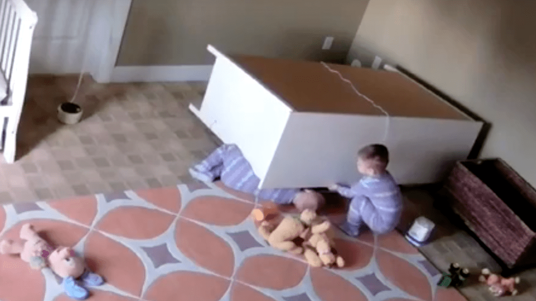 [VIDÉO] Un bambin délivre son frère jumeau coincé sous une commode