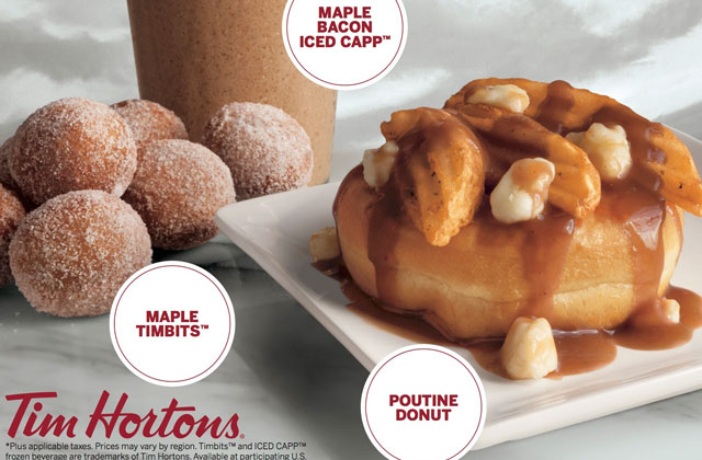 Pour célébrer le 150e anniversaire de la confédération canadienne, Tim Hortons lance un beigne édition spéciale à la poutine.