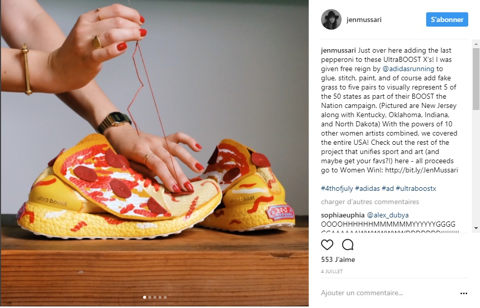 Instagram, Twitter, dans les journaux, en vidéo… Le «foodporn» est partout. Elle le sera bientôt jusque dans notre garde-robe. Adidas a produit une série très limitée d’UltraBoost à l’effigie de multiples ingrédients tels que le fromage, le homard ou la crevette. La basket «pizza» n’en oublie pas les tranches de pepperoni.