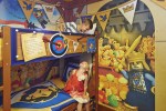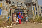 La pièce centrale de l’hôtel est un grand chevalier de 2,60 m sur sa monture, réalisé avec 160.000 briques et conçu par le lauréat britannique, âgé de 11 ans, d’un concours.