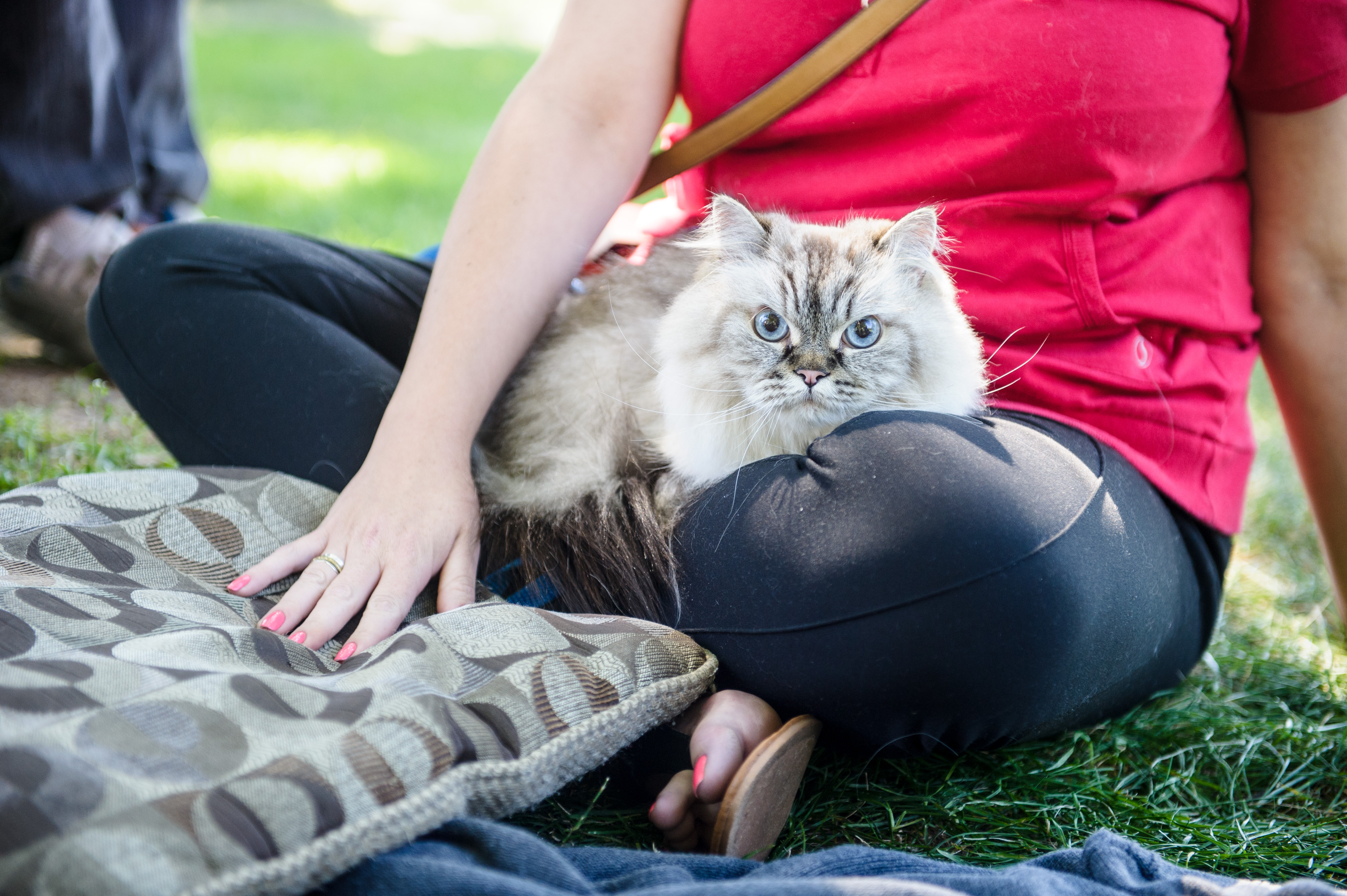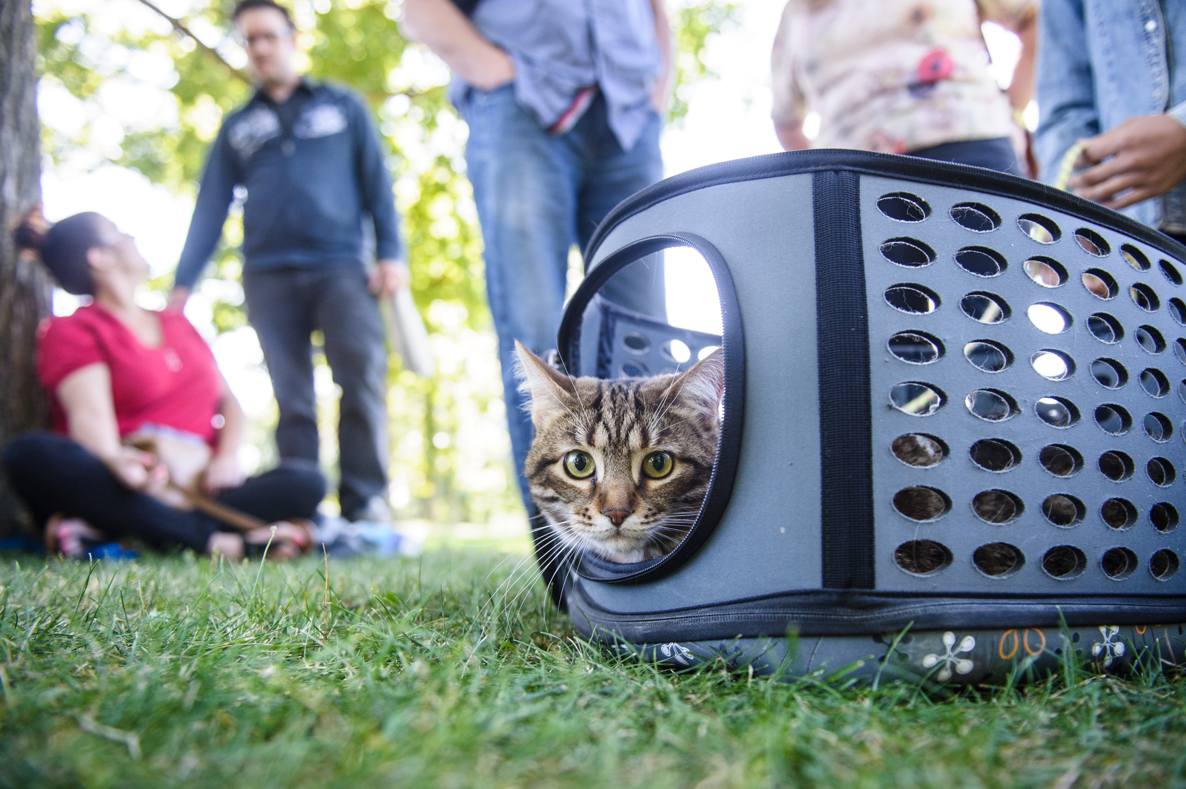 Une cinquantaine de personnes et une quinzaine de félins ont participé à ce rassemblement qui permet aux chats de socialiser à l’extérieur.