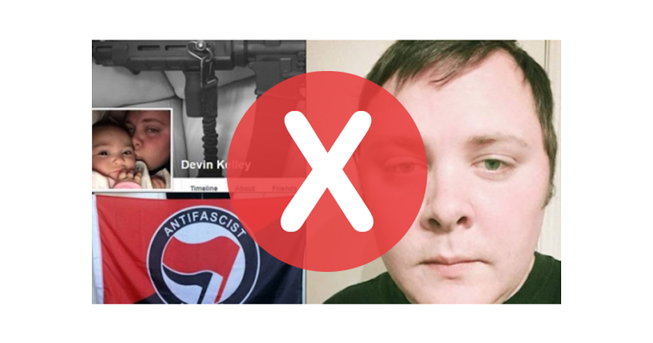 De faux profils Facebook au nom du tireur ont été (maladroitement) créés après l’attaque. Ces profils ont «aimé» des pages et des groupes reliés au mouvement antifasciste, ont publié quelques photos personnelles de Kelley, mais aussi des photos de drapeaux, de fusils, «prouvant» qu’il s’apprêtait à commettre un crime au nom des «antifas».