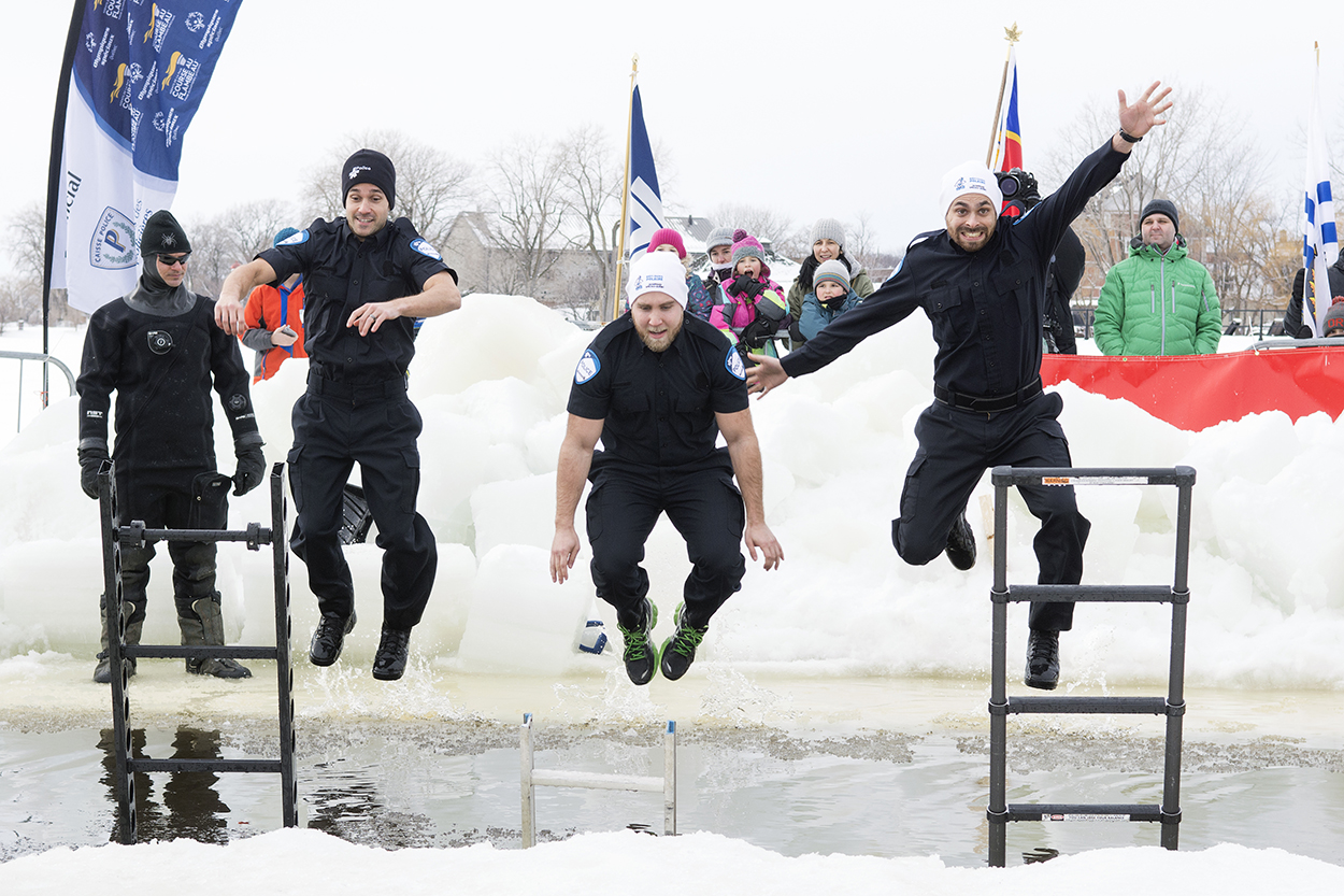 Chaque année, c’est entre 150 et 200 personnes qui se jettent à l’eau, peu importe la température qu’il fait. C’est tout un défi. Cette initiative du SPVM permet de redonner aux autres dans une ambiance festive», indique le nouveau commandant du poste de police de quartier 8, Claude Paradis.