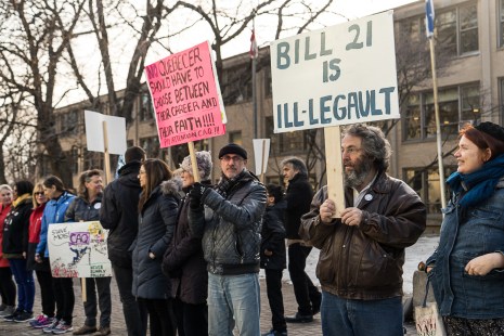 Environ 150 enseignants et membres de la communauté se sont réunis, mercredi matin sur le coup de 8h00, devant l’école secondaire située à Westmount. Ils protestaient contre le controversé projet de loi 21 qui vise à interdire le port de signes religieux aux employés de l’État en position d’autorité dans le but de garantir la laïcité de l’État québécois.