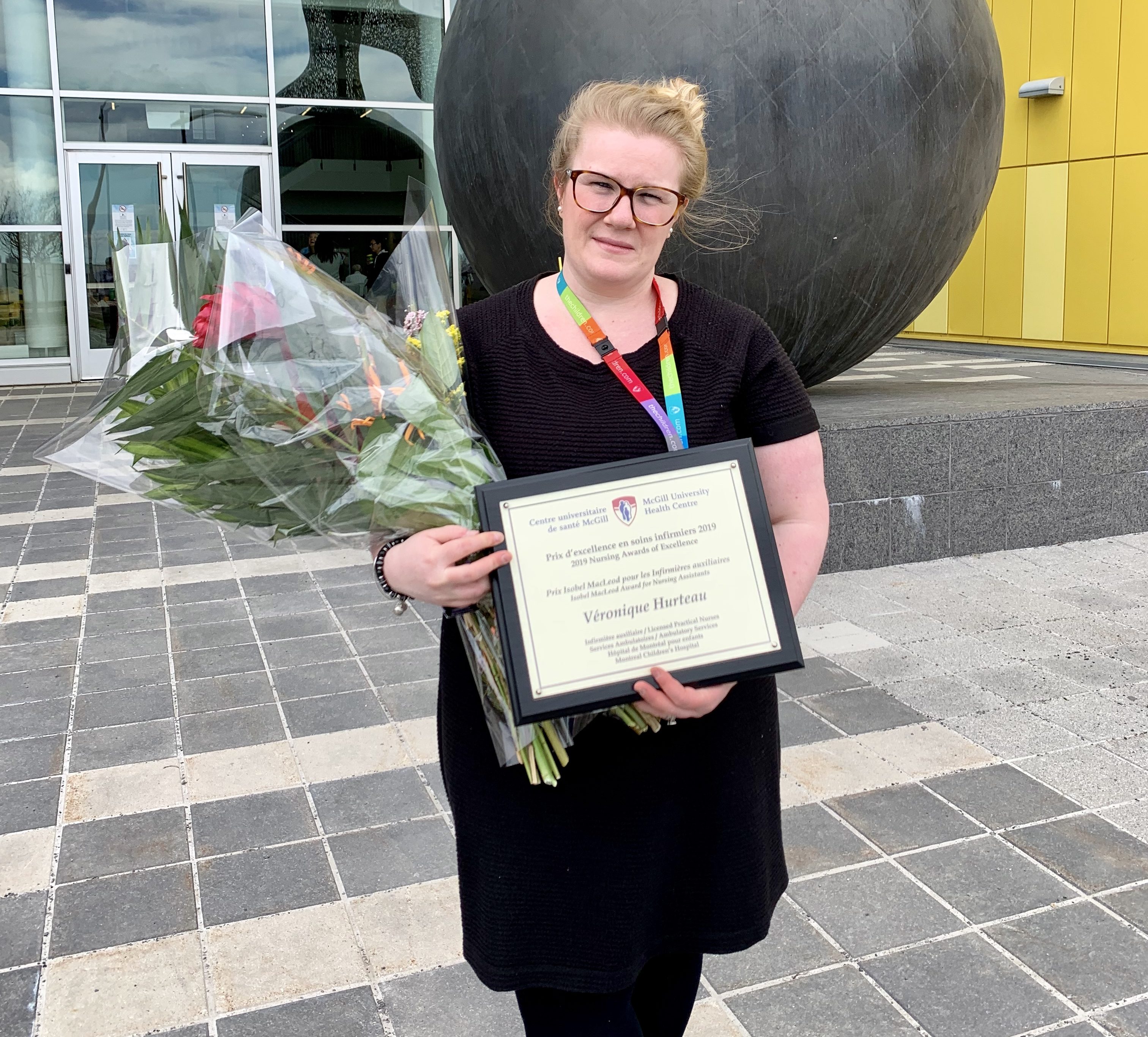 L’infirmière auxiliaire Véronique Hurteau a reçu le Prix d’excellence Isobel MacLeod pour son dévouement et son travail d’exception à l’Hôpital de Montréal pour enfants du Centre universitaire de santé McGill (CUSM).