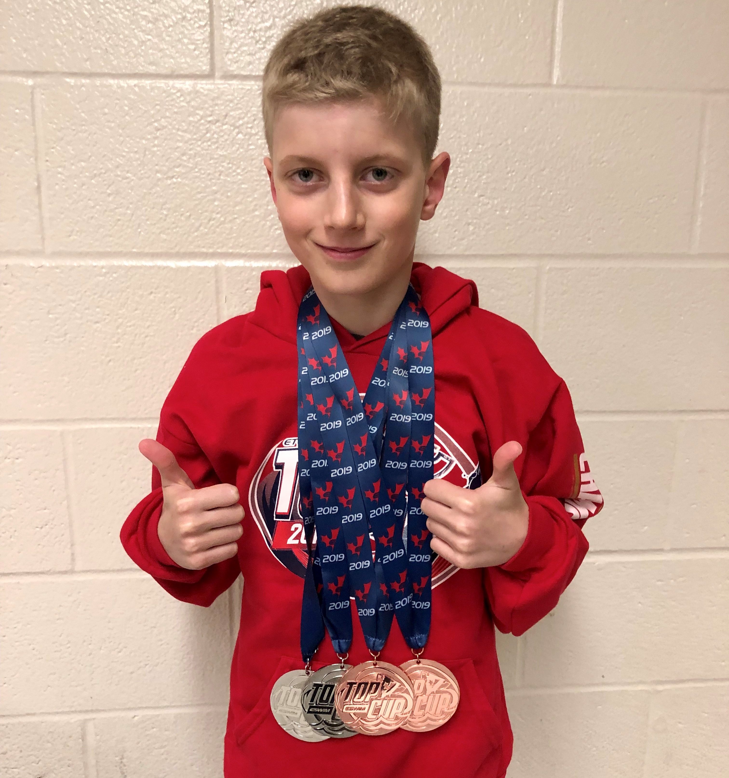 Un avenir prometteur semble se dessiner pour le jeune nageur lachinois Nolan Belleville, qui a remporté trois médailles d’argent et deux médailles de bronze lors de la compétition Top Cup SC d’Etobicoke, en Ontario.