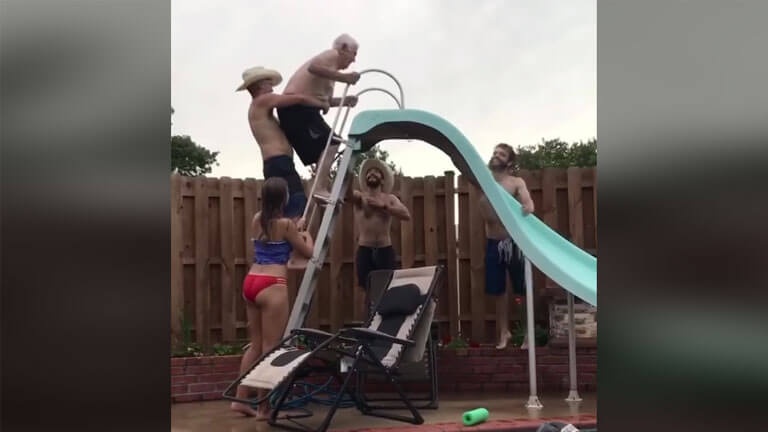Heureusement pour cet homme de 94 ans, il pouvait faire confiance à toute sa famille, rassemblée pour que la glissade se porte bien!