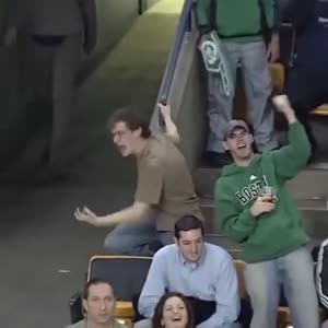 Dans ce cas-ci, c’est à se demander si ce jeune homme est aussi enthousiaste lorsque son équipe fait un but que lorsqu’il entend sa chanson favorite à l’entracte.