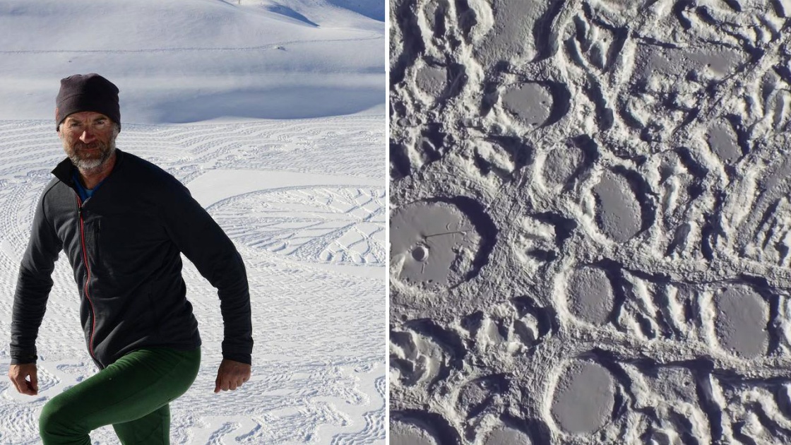 Les images sont spectaculaires, tout comme son travail. Pendant une journée complète, Simon Beck fait un dessin dans la neige à l’aide de ses bottes ou de raquettes sur des superficies pouvant aller jusqu’à 8 hectares histoire de créer des images éphémères.