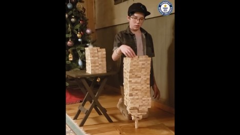 Auldin Maxwell, un jeune canadien de 12 ans résidant en Colombie-Britannique, a battu un incroyable record du monde Guinness. Ce dernier a battu le record du plus grand nombre de blocs Jenga à tenir en équilibre sur un seul bloc avec 693!