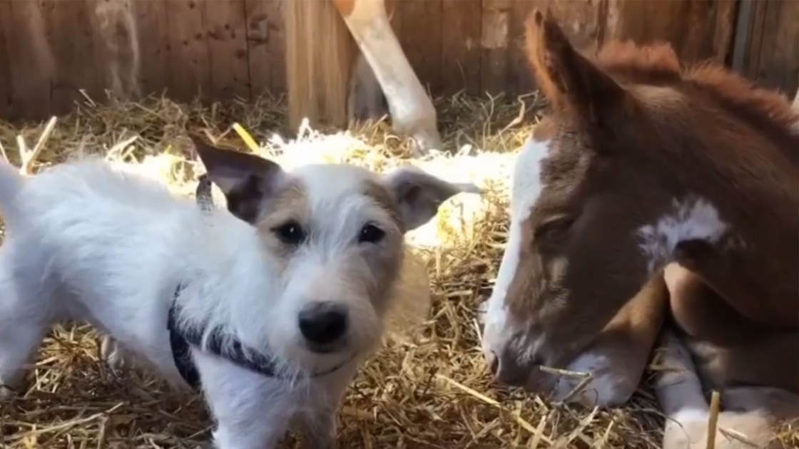 Habituellement, le petit chien Chanel a très peur des chevaux.