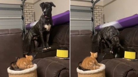 On peut très bien être un très grand chien et être terrorisé par de minuscules chatons…