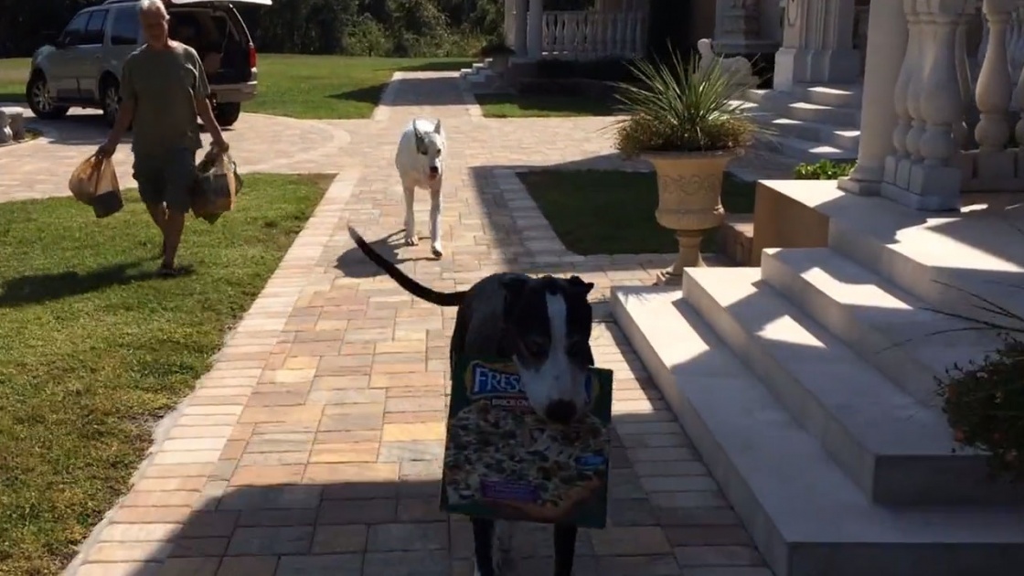 C’est bien beau d’avoir de si gros chien, mais s’ils peuvent en plus se rendre utiles de temps à autre, ça joint l’utile à l’agréable!
