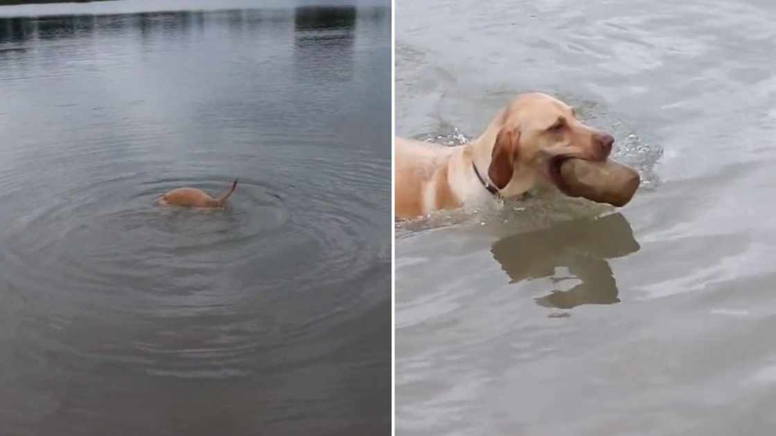 À un an, ce labrador adore plonger sous l’eau et aller jeter un coup d’œil à la vie aquatique.