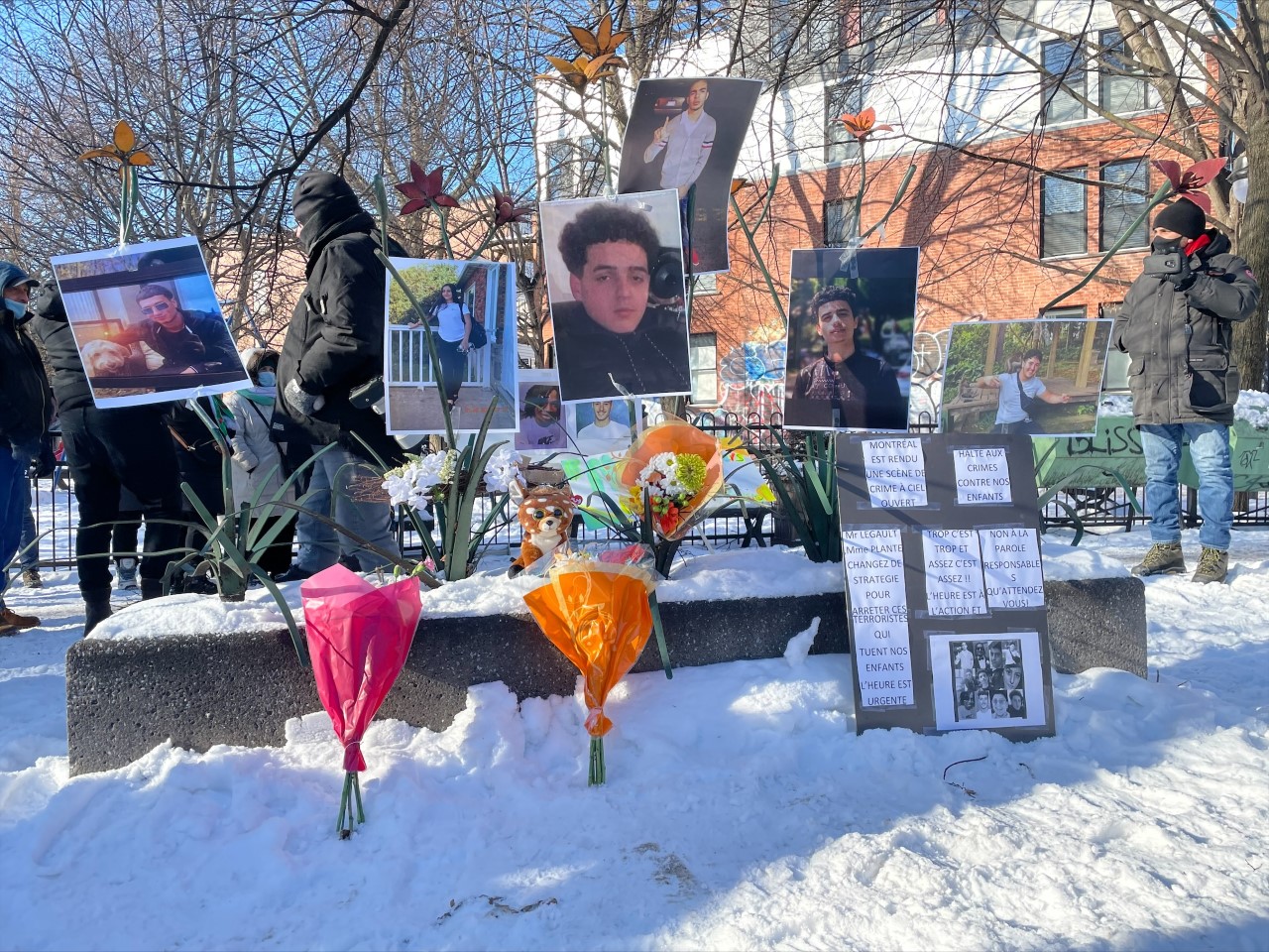 Rassemblés aux coins des rues Rivard et Roy, dans l’arrondissement du Plateau-Mont-Royal, des dizaines de personnes sont venues se recueillir devant des portraits du jeune Amir Benayad et de celui d’autres jeunes eux aussi fauchés par la mort. Après plusieurs discours, une minute de silence a été respectée.