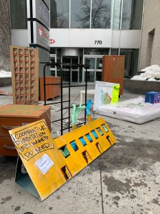 Partis en début d’après-midi de la place Norman-Bethune, les manifestants ont marché jusqu’aux bureaux du premier ministre François Legault pour presser le gouvernement de s’occuper de la crise du logement. Des meubles ont été laissés sur place comme symbole du sort réservé aux locataires victimes d’éviction.
