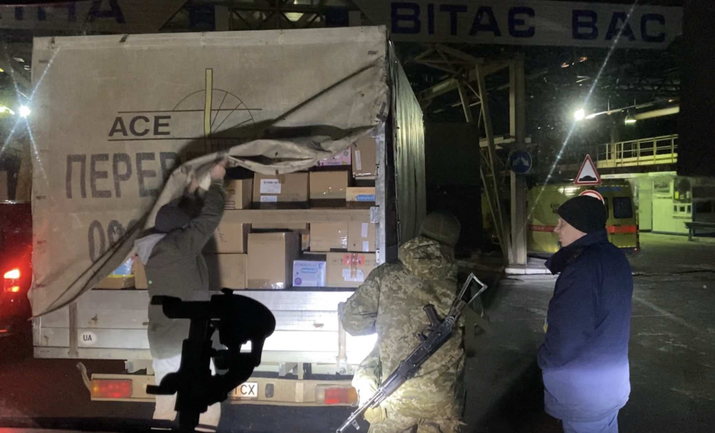 Deux soldats bénévoles étaient assis dans une Volkswagen devant moi. Ils portaient des uniformes fabriqués à partir de surplus de l’armée. Un homme avec un treillis mal ajusté et des bottes noires se tenait à côté d’un autre, qui avec des bottes brunes et un jean moulant couleur camouflage. Certains camions transportaient tant de boîtes de conserve que leurs châssis se heurtaient pratiquement à la chaussée. La diaspora est également venue de toute l’Europe occidentale pour chercher ses proches et les emmener en sécurité dans leurs pays d’adoption.