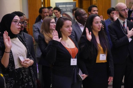 Un grand nombre de jeunes citoyens étaient présents pour le coup d’envoi du 35e Jeune Conseil de Montréal, donné aujourd’hui par la Ville. Il s’agit d’une simulation politique municipale non-partisane ayant lieu une fois par an à l’hôtel de ville de Montréal.