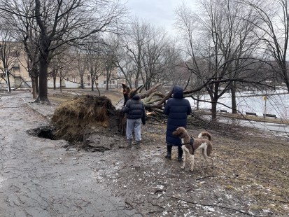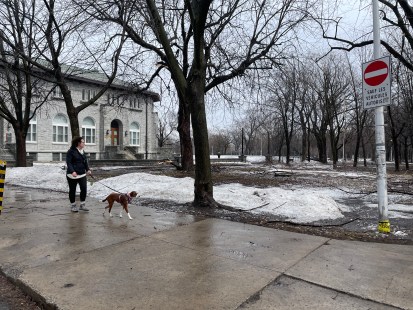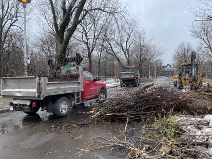 Kathy promène son chien malgré les recommandations de l’arrondissement de ne pas se rendre dans les parcs. «C’est tellement triste! Je promène mon chien ici tous les jours», raconte cette habitante du quartier. «Le plus dur est passé. Les branches ne tomberont plus, tout fond», se rassure Kathy, qui a toujours de l’électricité dans son appartement.