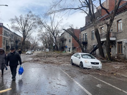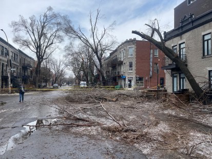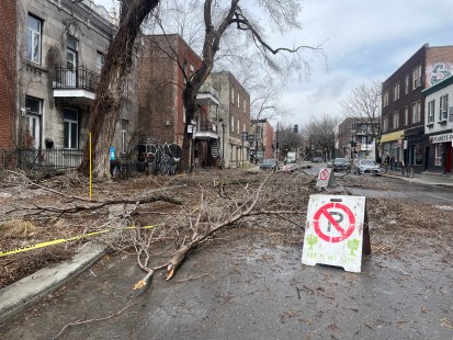 À la sortie du parc, la scène est tout aussi impressionnante. De nombreux immeubles sont privés d’électricité et les routes sont barrées. La rue Gauthier mène au parc La Fontaine. Elle est résidentielle et habituellement très calme. Ce jeudi, le bois des branches jonche le bitume détrempé de la route. Un couple d’aînés slalome entre les branches. «Pas si simple», en rigole le vieil homme.