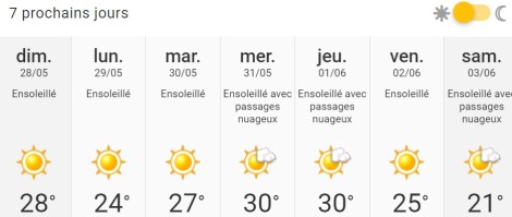 Et soleil rimera avec chaleur, puisque les températures seront hautes. 27 degrés sont attendus mardi et 30 pour les journées de mercredi et jeudi.
