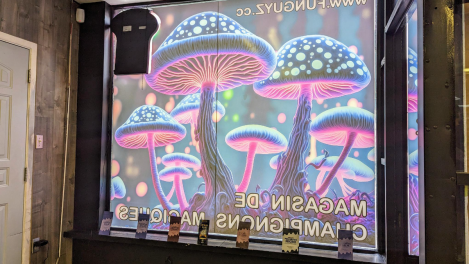 La boutique illégale de champignons magiques Funguyz, qui a ouvert une première fois ses portes le 11 juillet, a été perquisitionnée à nouveau jeudi midi par le Service de police de la Ville de Montréal (SPVM). Il s’agit donc d’une troisième perquisition en moins d’un mois dans ce commerce, situé au centre-ville, dont la stratégie est de rouvrir après chaque descente policière.