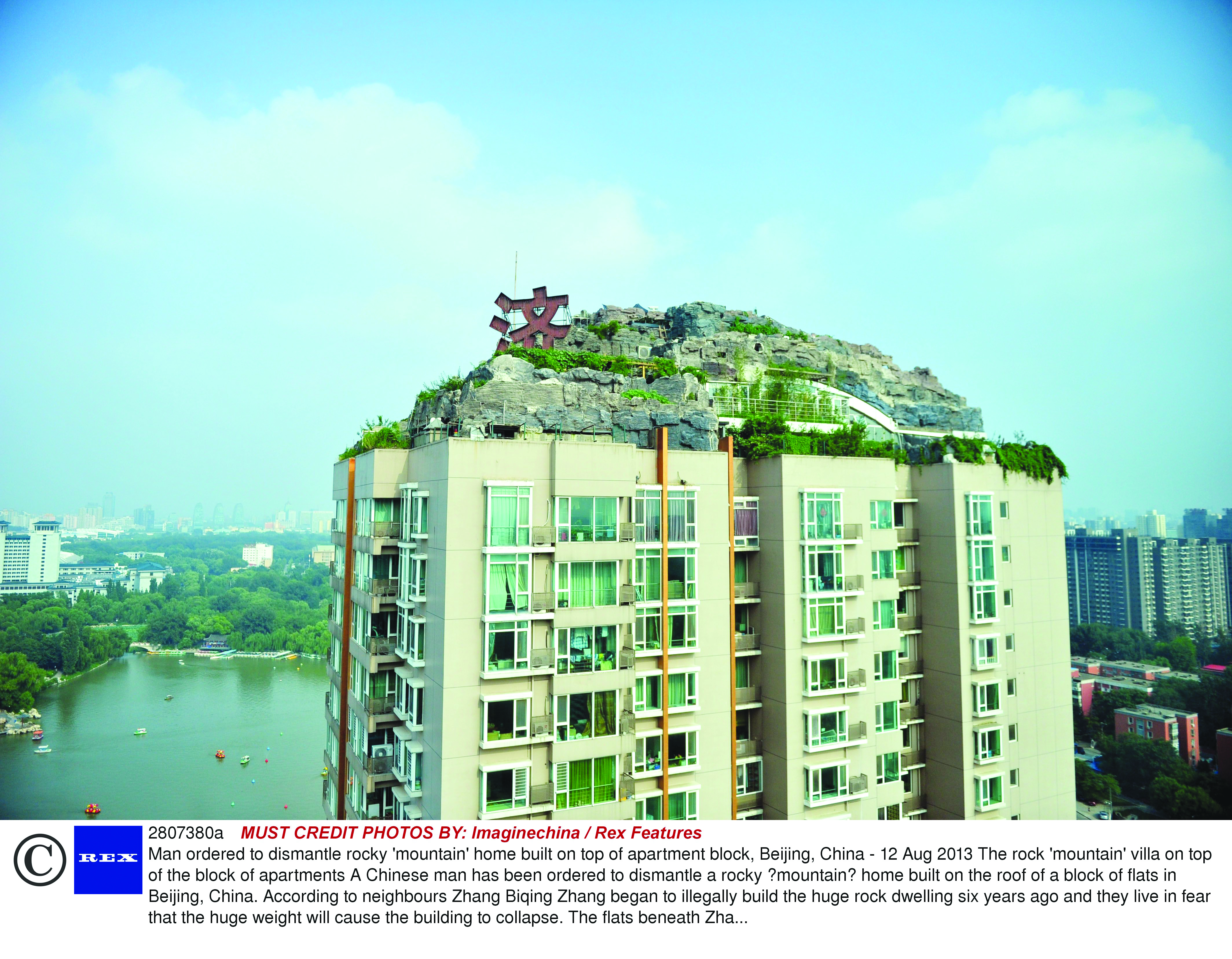 Un mystérieux praticien de médecine chinoise s’est vu obligé de démanteler une villa rocheuse construite au sommet d’une tour de 26 étages. Les voisins disent que le professeur Zhang Biqing a commencé à construire illégalement l’énorme habitation de pierre il y a six ans. Ils confient qu’ils vivent dans la peur que le bâtiment s’effondre à cause du poids de la structure.