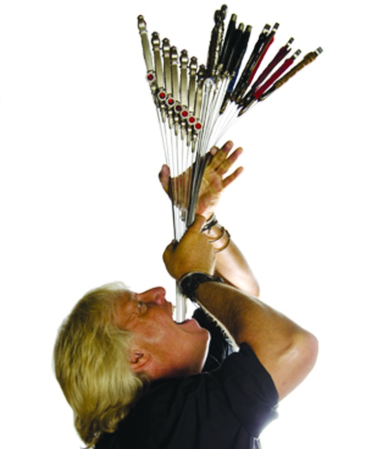 Nous souhaitons battre des records. L’an dernier, nous avons tenu le plus grand événement du genre, en réunissant 43 adeptes. Cette année, nous battrons probablement ce nombre. Dix seront à New York, 11 à Hollywood – incluant Enigma, qui est couvert de tatouages de casse-tête bleu – et six en Floride. Il y a un Bavarois qui fera son spectacle en costume traditionnel, une fille qui combine les épées avec les arts martiaux et une dame du Panama qui fait du ballet en même temps qu’elle avale ses épées.