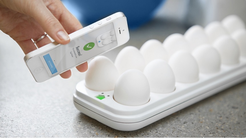 À l’heure du tout connecté, même le compartiment à oeufs du réfrigérateur devient intelligent. Un plateau dédié parvient à préciser s’ils sont bons pour la poubelle ou bons pour la pâte à gâteau, via une application pour téléphone intelligent.