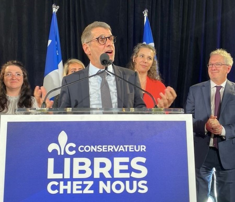 Le chef du Parti, Éric Duhaime, qui se présentait dans la circonscription de Chauveau et qui a terminé deuxième derrière le caquiste Sylvain Lévesque, a tout de même su tenir un discours rassembleur et rempli d’espoir devant ses militants rassemblés au Manoir du Lac Delage, dans la région de Québec. «Les Québécois ont choisi de continuer, s’est-il exprimé dans son discours officiel en faisant référence à la Coalition avenir Québec. Nous, on a choisi de continuer à les avoir à l’œil et à les surveiller.» Il est revenu sur sa défaite, avant de quitter rapidement les lieux. «Ce soir, il y a des gens qui pensaient qu’ils allaient voir un gars brailler, mais il y a un gars qui sourit ici. On est le parti qui connaît la plus forte croissance, et de loin.»