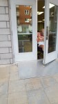 Pour les personnes se déplaçant en fauteuil roulant, rentrer ensuite dans l’immeuble par ce biais-là s’avère compliqué. Ils ne peuvent monter seules la courte rampe, tenir les roues de leur fauteuil et tirer en même temps la porte vers eux.