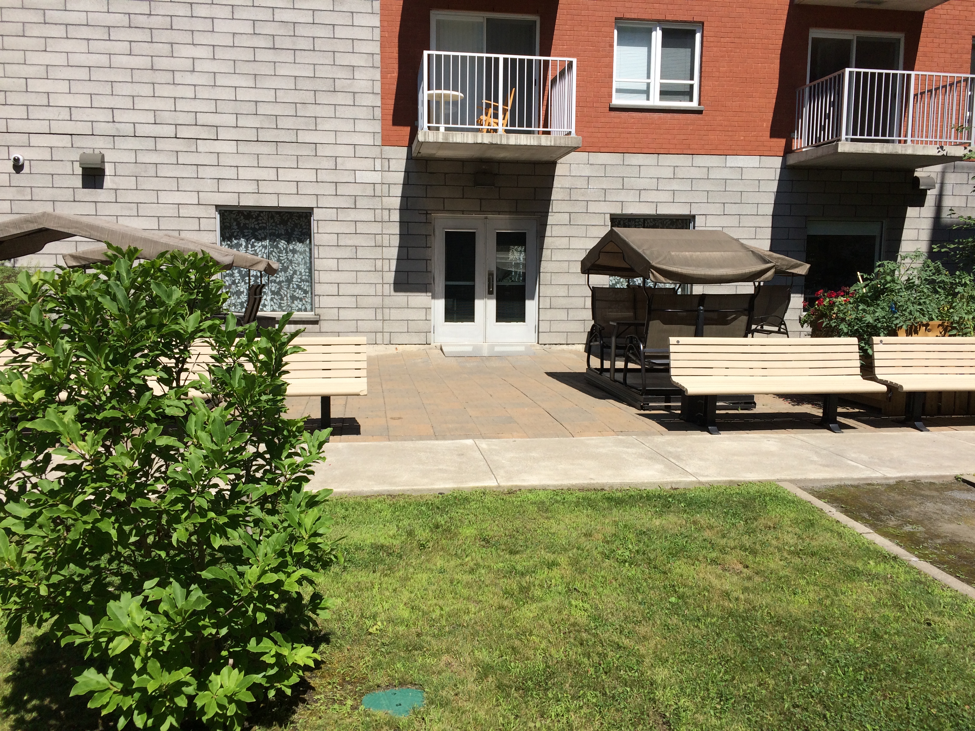 Alors que deux terrains de pétanque et cinq balançoires y sont disposés dans un cadre agréable et rempli de verdure, les résidents peuvent y accéder à travers la cafeteria et une porte qui ne dispose d’aucune ouverture automatique ni de main courante.