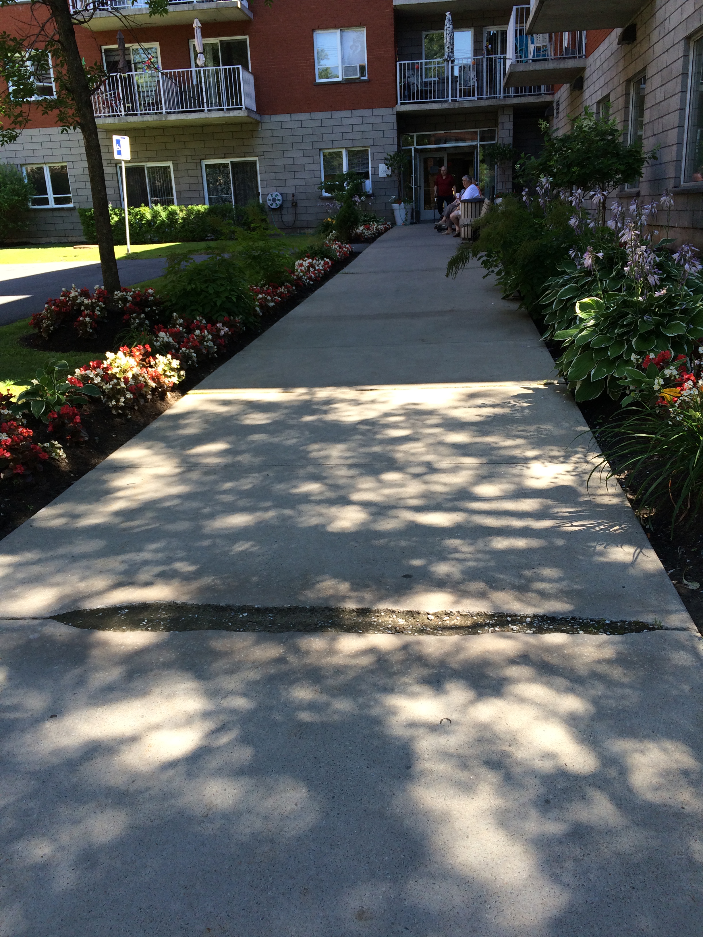 Deux locataires d’un bâtiment pour personnes âgées à Montréal-Nord dénoncent un accès difficile pour les personnes handicapées dans une cour de l’immeuble.