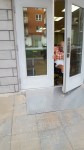 Pour les personnes se déplaçant en fauteuil roulant, rentrer ensuite dans l’immeuble par ce biais-là s’avère compliqué. Ils ne peuvent monter seules la courte rampe, tenir les roues de leur fauteuil et tirer en même temps la porte vers eux.