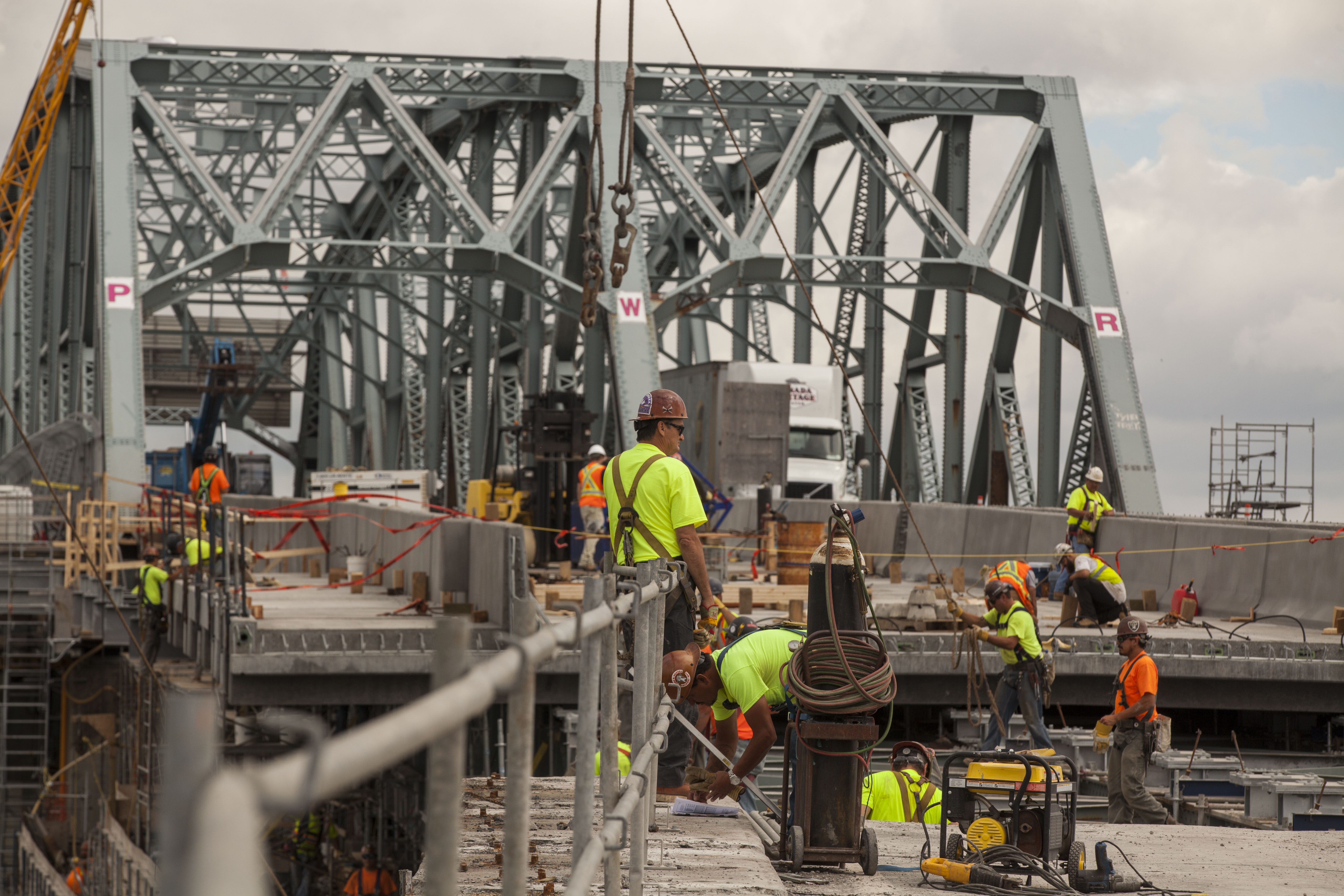 Le projet de rénovation de la portion fédérale du pont est d’une valeur de 200 M$. Amorcés depuis 2008, les travaux doivent se terminer le 21 août. Depuis le 24 juin, 70 employés travaillent 20 heures par jour, sept jours par semaine, pour installer 78 dalles de béton, variant de 19 à 57 tonnes. Le budget consacré à cette dernière étape se chiffre à 46 M$.