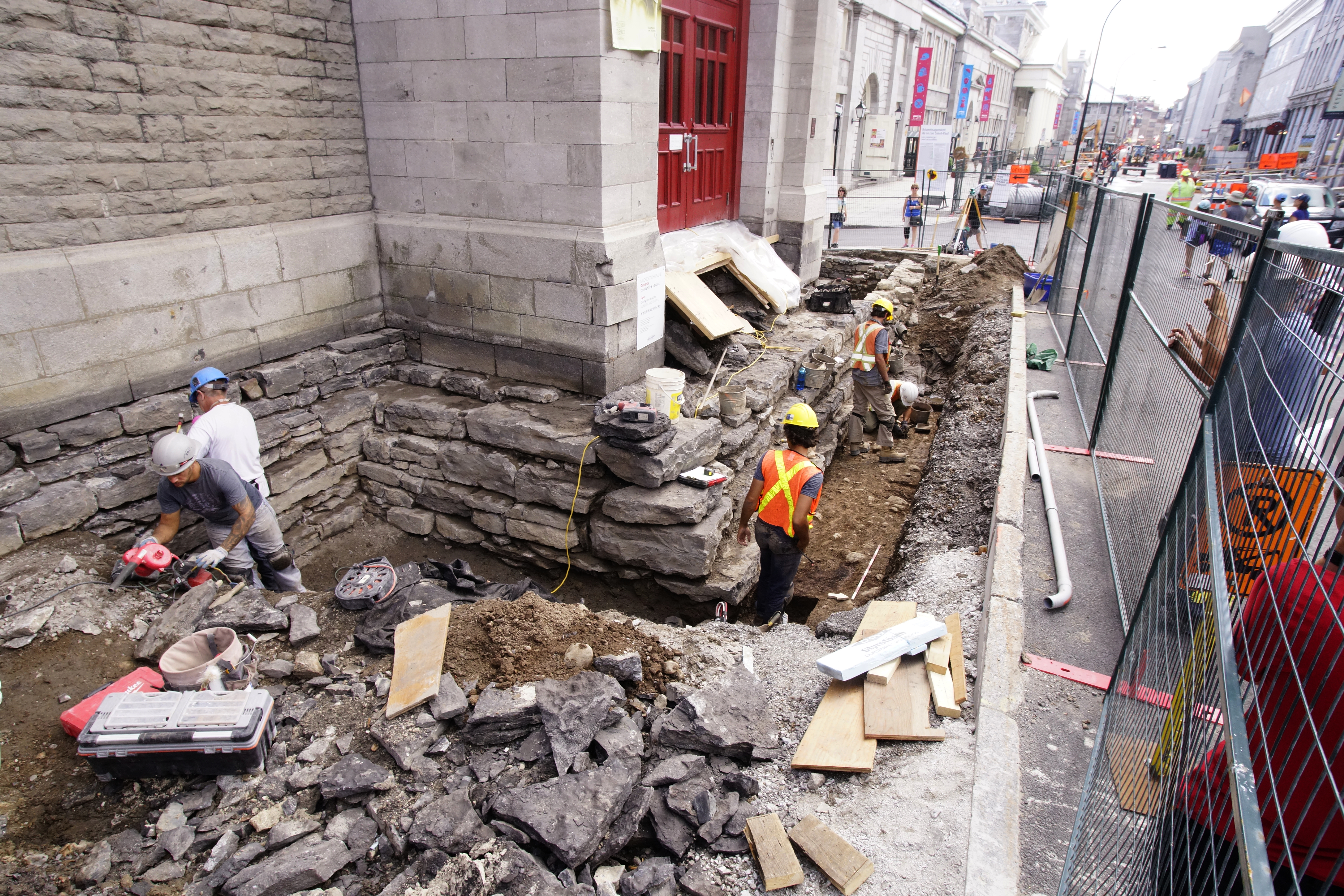 Des travaux devant la chapelle Notre-Dame-de-Bonsecours, rue Saint-Paul dans le Vieux-Montréal, ont permis de faire des découvertes archéologiques inespérées.