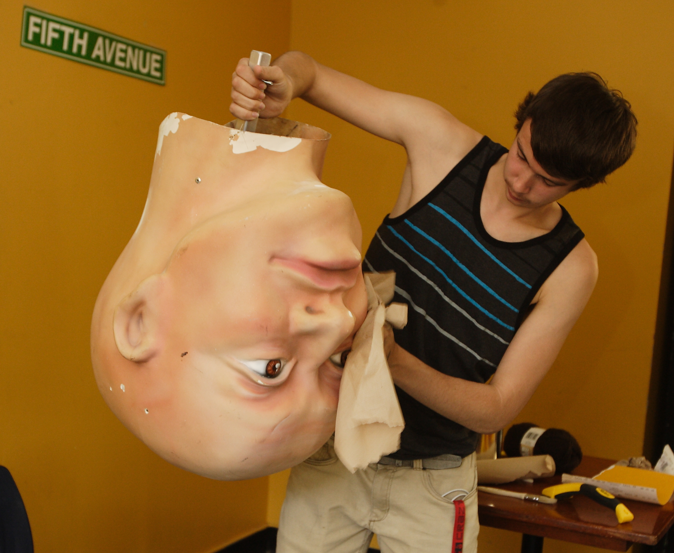 Mais le travail ne s’arrête pas là, car les jeunes doivent aussi apprendre à manipuler ces géants de 10 pieds qui s’animeront lors du défilé.