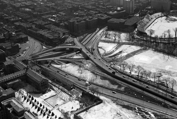 1988: Dans son plan de mise en valeur du mont Royal, la Ville prévoit la démolition de l’échangeur.
