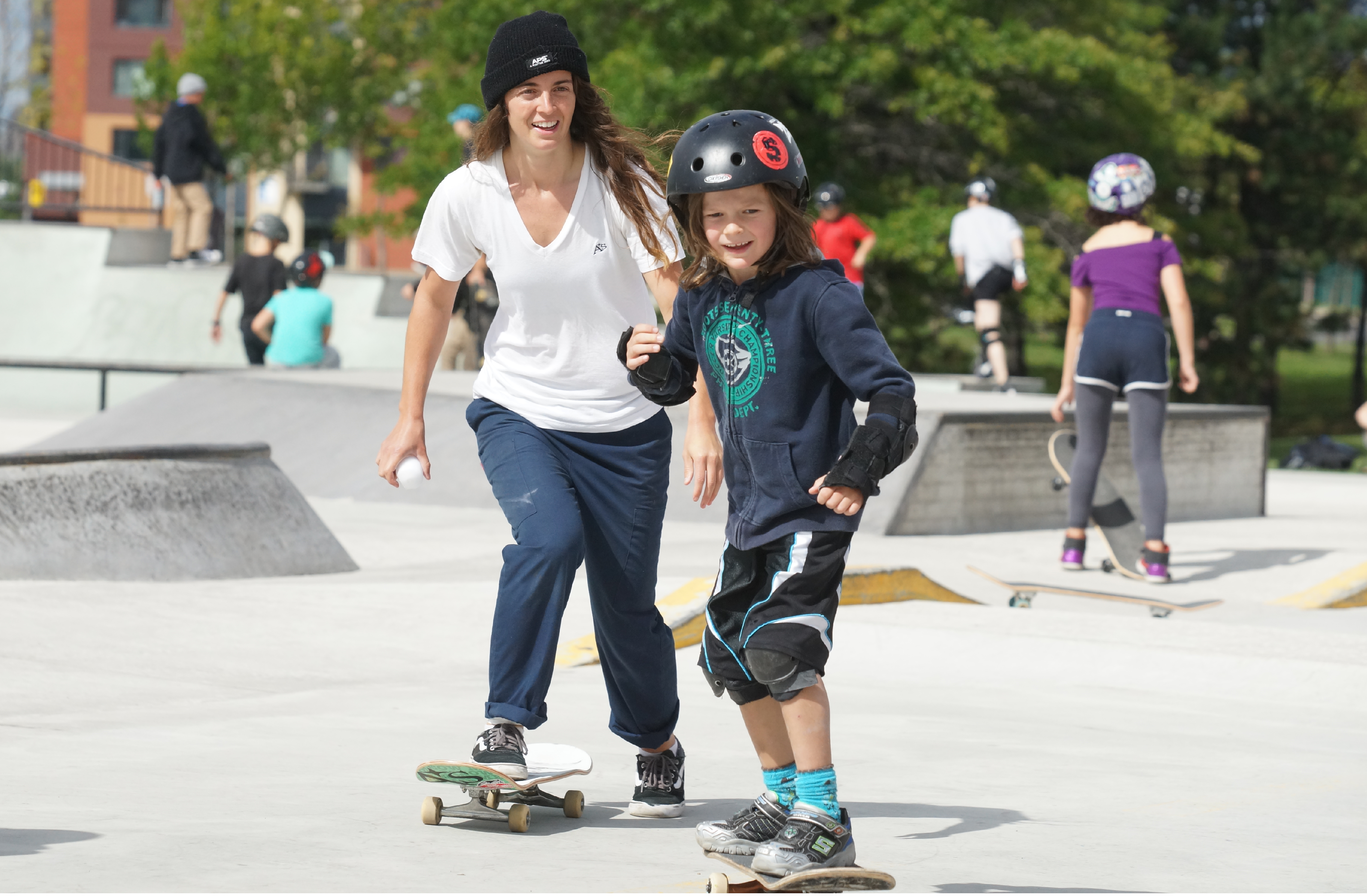 De plus en plus d’initiatives ont lieu à Montréal et dans le monde pour encourager les filles à pratiquer le skateboard, selon l’organisatrice du All Gurlz Sk8 D8, qui a réuni dimanche plus d’une cinquantaine de filles de tous âges et tous niveaux au skatepark de Verdun.