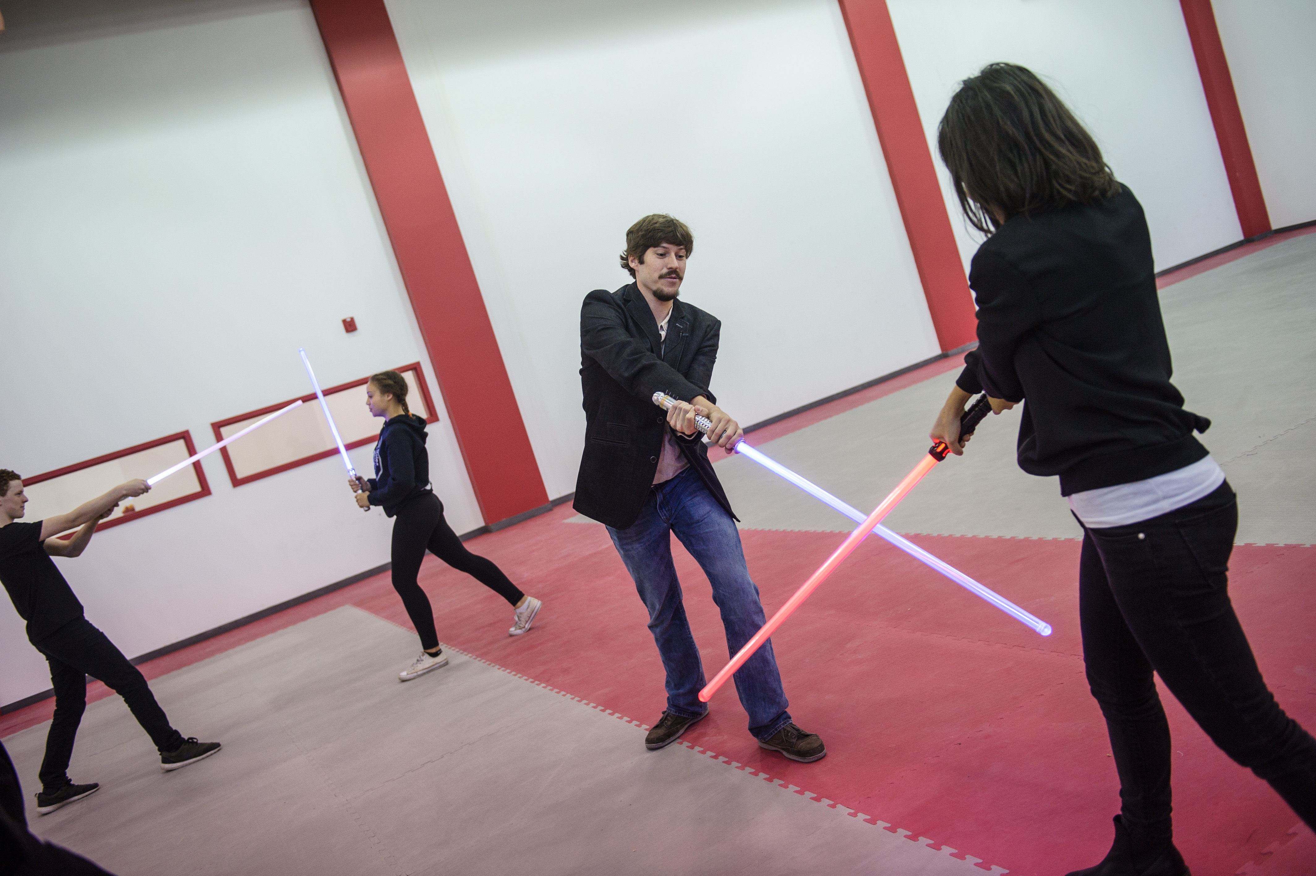 Ainsi, on ne se frappe pas réellement avec les armes en plastique, à moins de faire de la compétition, ce qui nécessite alors des protections. «Ce n’est pas un art de combat, ajoute le maître. On travaille plus au niveau des mouvements et on veut s’intégrer dans un univers de science-fiction.»